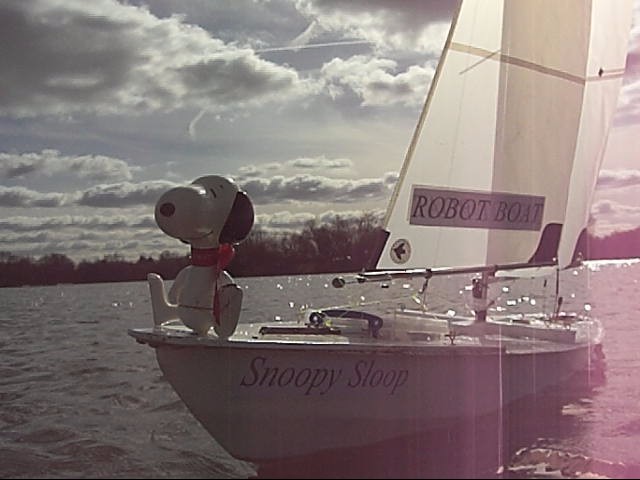 Snoopy's robot boat, only 1.2 metres long, intended to cross the Atlantic, from UK to USA.