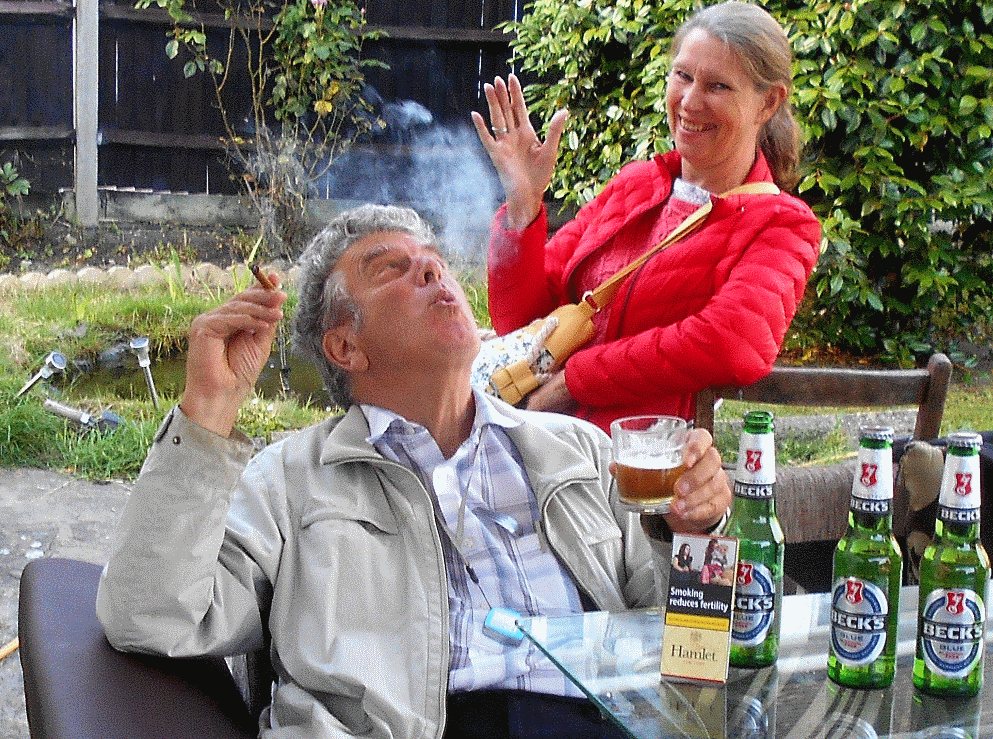 Robin and June enjoying cigar smoke at the Bansals in our village;