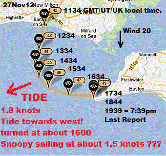Snoopy's Track on Google Earth to analyse what happened on 27th November 2012.