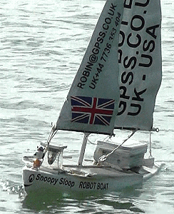 Snoopy returned home, and has been undergoing tests on Bray Lake. These show we need to fix a "Zig-Zag" sailing problem. We learnt a lot more from this attempt, and Snoopy will make another Atlantic attempt soon ! :-)
