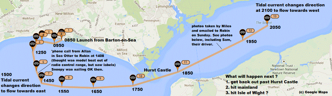 Thursday 28th August: Snoopy Sloop 10 was put back onto 24/7 duty at 0925 and the SPOT map reset, for clarity. Click on the