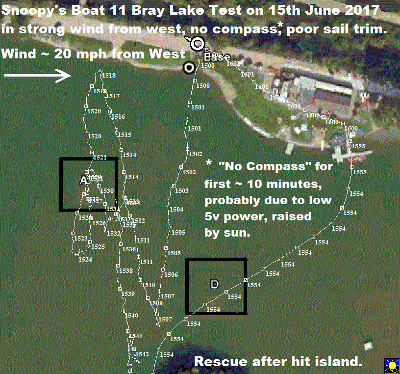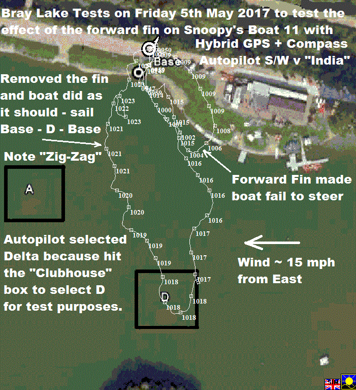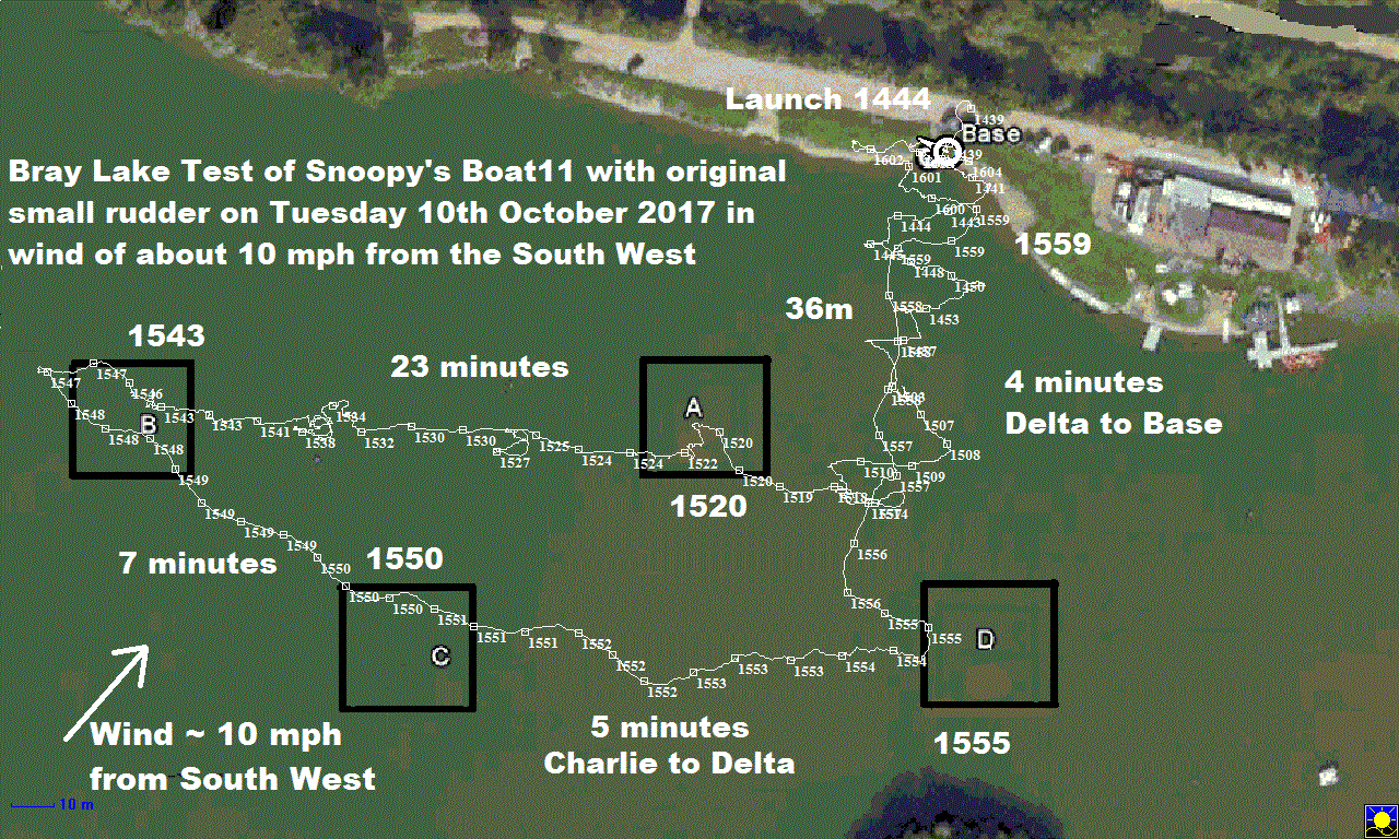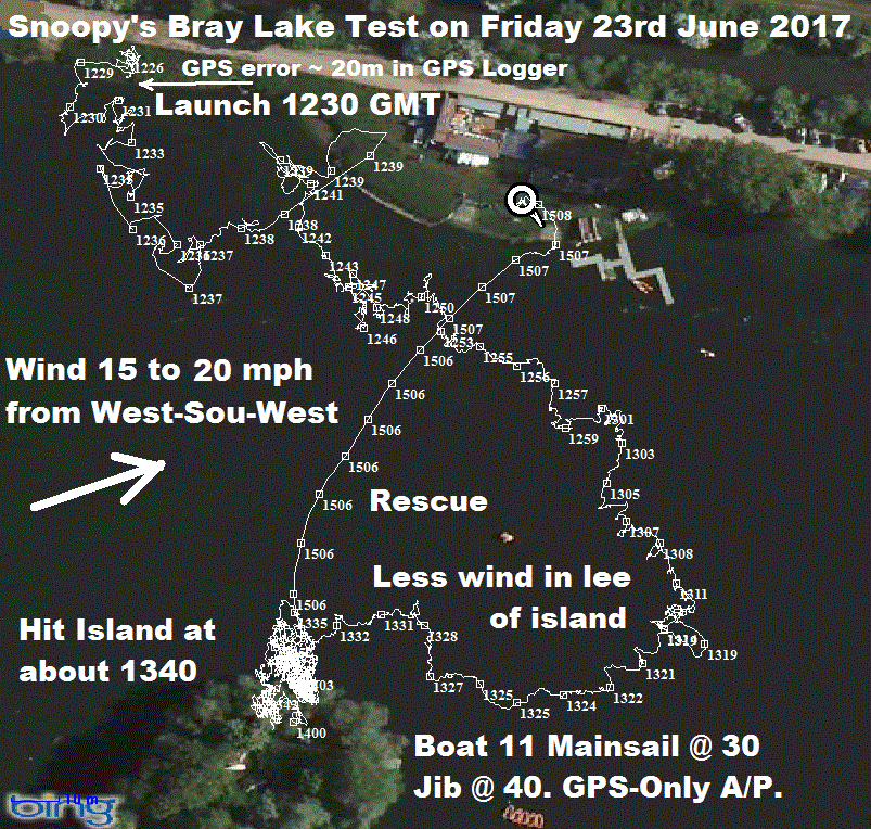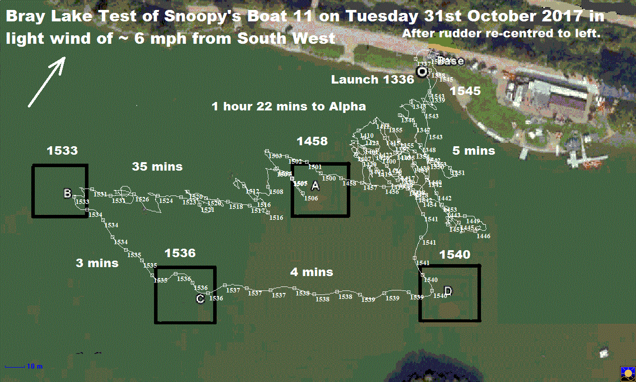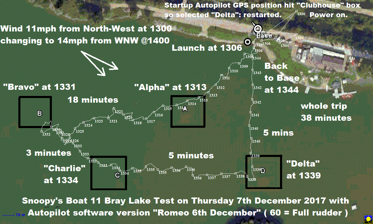 Snoopy's Bray Lake Test ... sail 530 metres automatically, through 5 waypoints ...