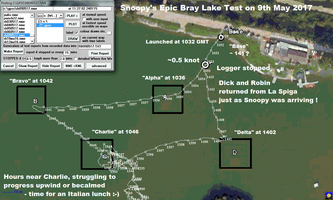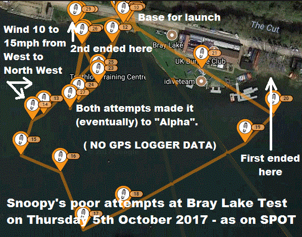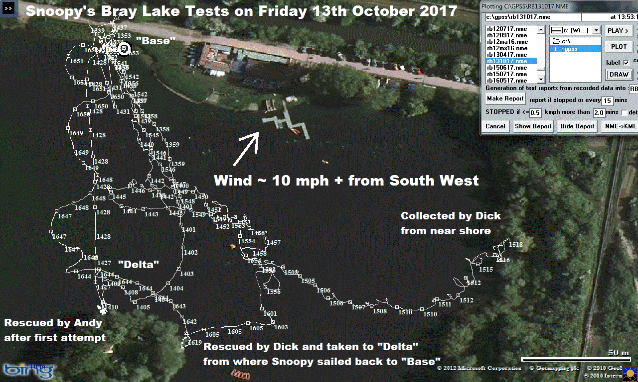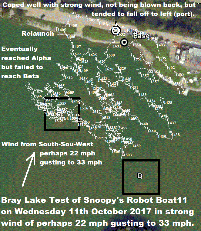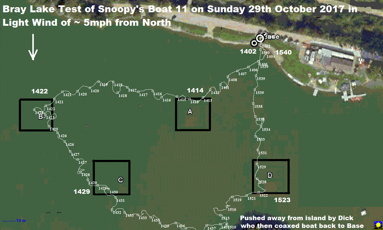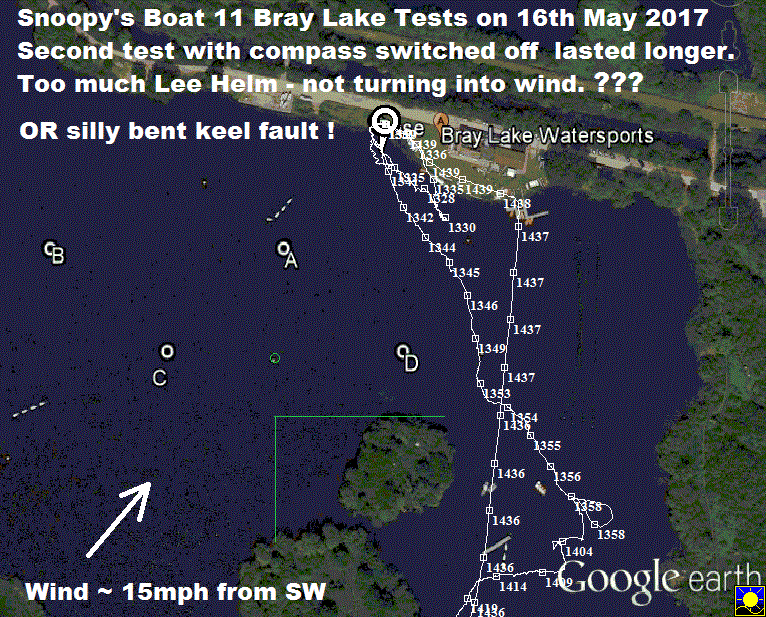 Snoopy's Bray Lake Test ... sail 530 metres automatically, through 5 waypoints ...