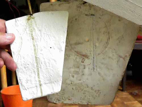 An enormous crack has appeared, in the weeks that Boat 11 was left in the back garden. It seems that