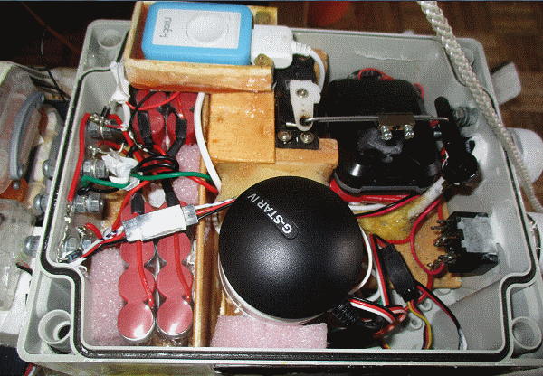 There is a lot I would not change in the 2017 Boat. e.g. 1.2 metre long Marblehead hull with IOM #3 Storm sails; GPS-Only Autopilot, based on Picaxe computer and Globalsat BR355 GPS. I may experiment with new ideas, such as power switching, compass steering, and wind direction sensors - but they are only adopted after many months, or even years, of prototyping then thorough testing. However, I've added this section, so you don't miss important future changes, mostly based on the discovery of better products. In short they are: 1) Use of SPOT Trace, instead of a modified SPOT Messenger; 2) Use of the Picaxe 28X2 Computer, instead of the Picaxe 08M2: more memory and comes assembled; 3) Use of the Globalsat BR355-S2 GPS, including applying a firmware patch, and configuring it with Static Navigation off, and only $GPRMC sentences; 4) Fewer but better solar panels. You will see these products discussed in more detail, later on this "Design" page and linked pages. The pictures should help you find the relevant sections.