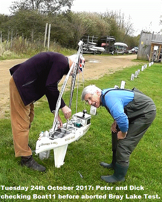 Peter, Dick and Robin to Snoopy's Boats 11 and 12 for Bray Lake Test with software version "Romeo" on 1st December.