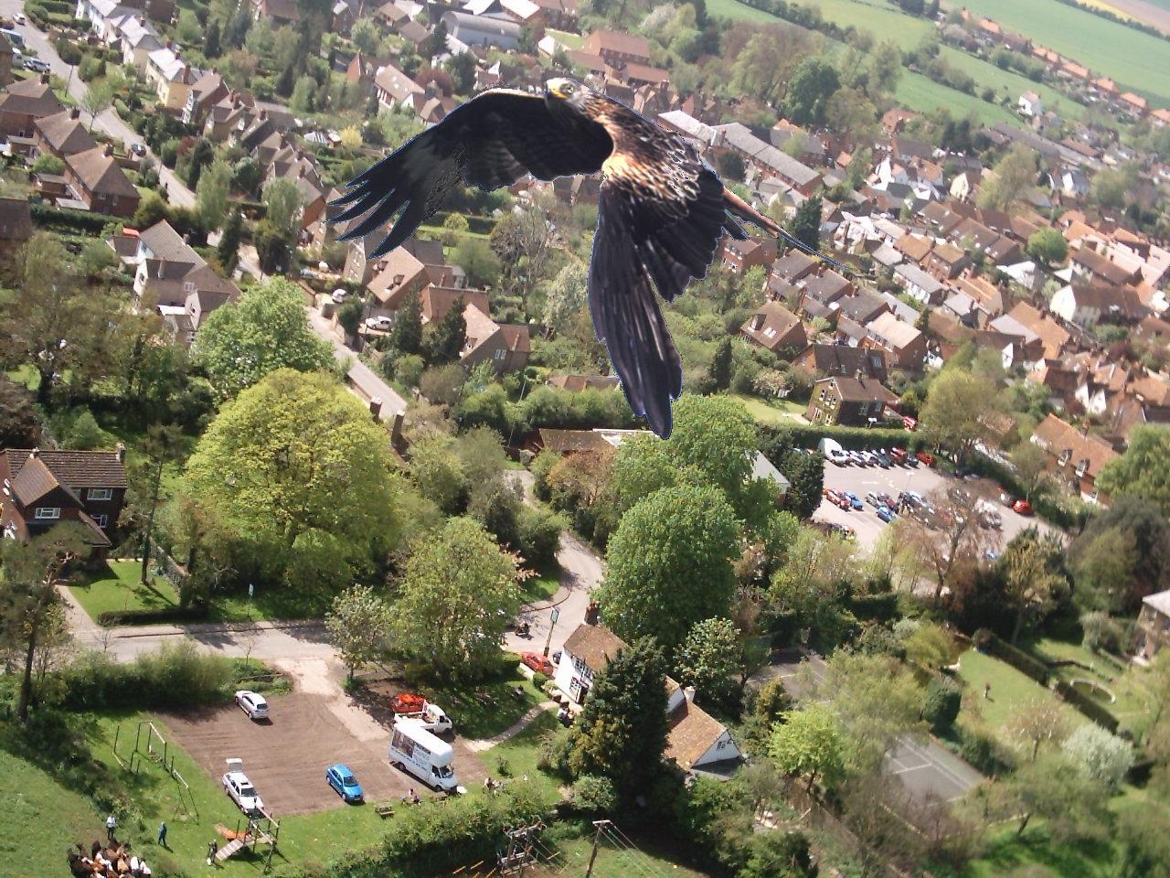 On the right is a still picture taken over The Three Horseshoes at Radnage on a suitable sunny day. The videos are available below, and are yet to be updated with our latest clips. We are now regular visitors to the pubs below, hoping for more days with bright sunshine, little wind, and the sky full of red kites :-)
