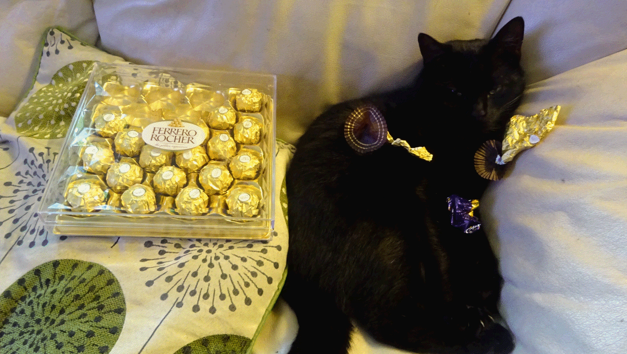 Click on new videos or pictures of Tody to play or enlarge - if you dare ! Tody is learning new skills in disrupting our communication systems ! That's Tody familiarising himself with one of Robin's old Clansman military radio systems. See Robin's EASAMS page and the Barossa Operation for some ancient History . Tody likes June's chocolates :-)