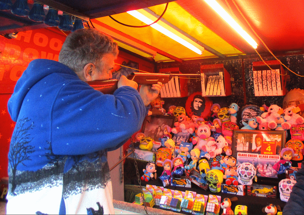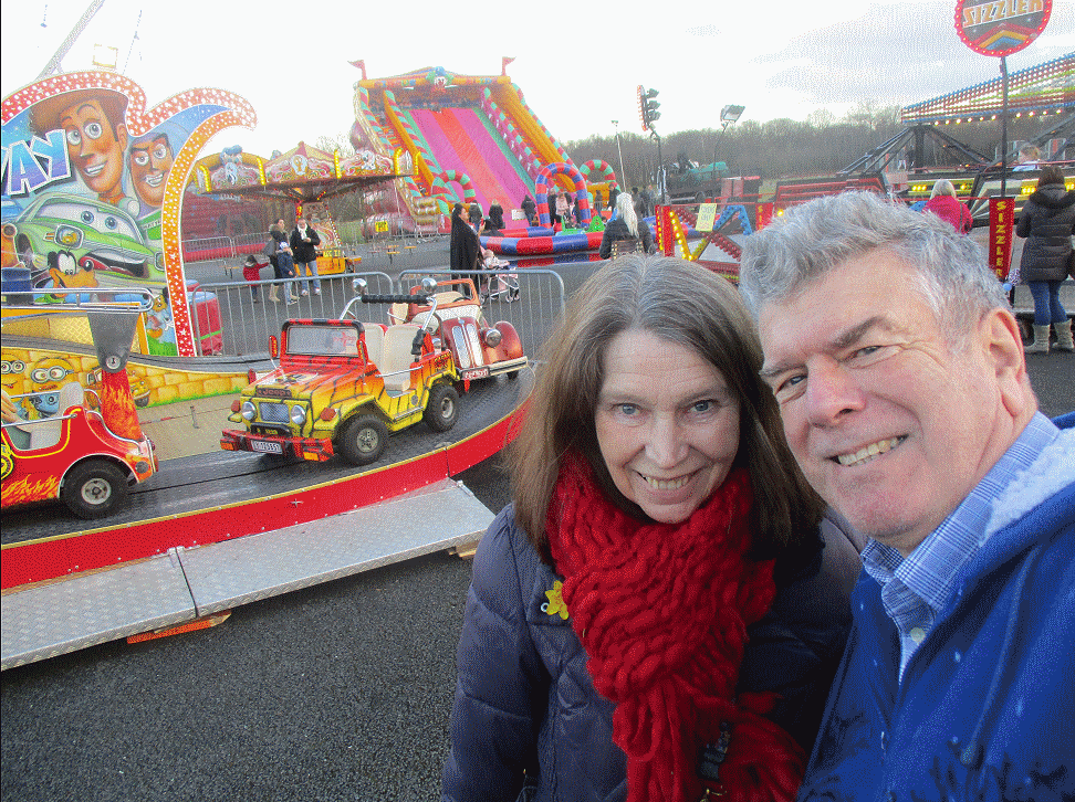 After checking out things like historic aircraft, and buses, they ended the trip at the nearby fairground. Robin used his rifle shooting skills, forgotton since the 1960s, when he first fired a rifle in The City University rifle range, in the cellar. Eileen, manning the stand, would not let Robin use a higher calibre than the 177 air rifle, but gave him the little boggle eyed doggy when he won ! :-)