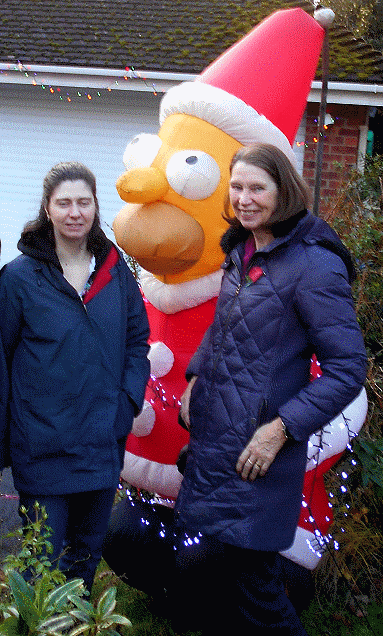 Here is a recent picture of Samantha, Homer, and June, after we put up the Christmas lights. June retired this year, after 11 years with Axon. She can now spend more time helping Robin with housework*, gardening, and going out to enjoy ourselves. * Robin's friends know how much time he spends on "women's work" ;-)