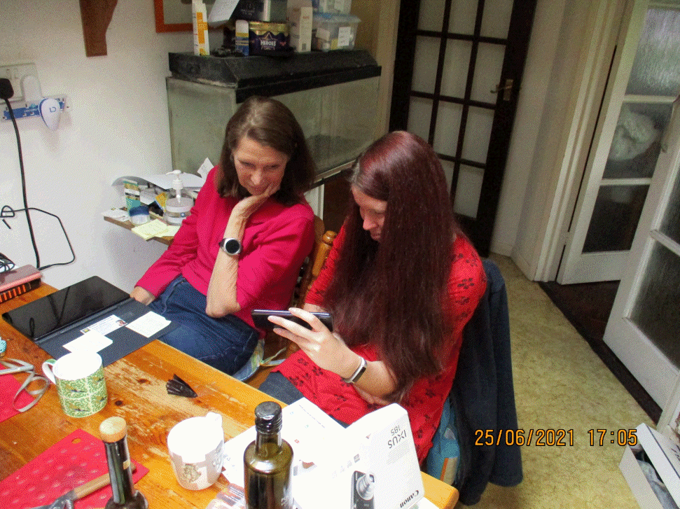 The women are now relaxing: June in Kitchen watching Live Tennis from Eastbourne on Prime & playing Nanogram;