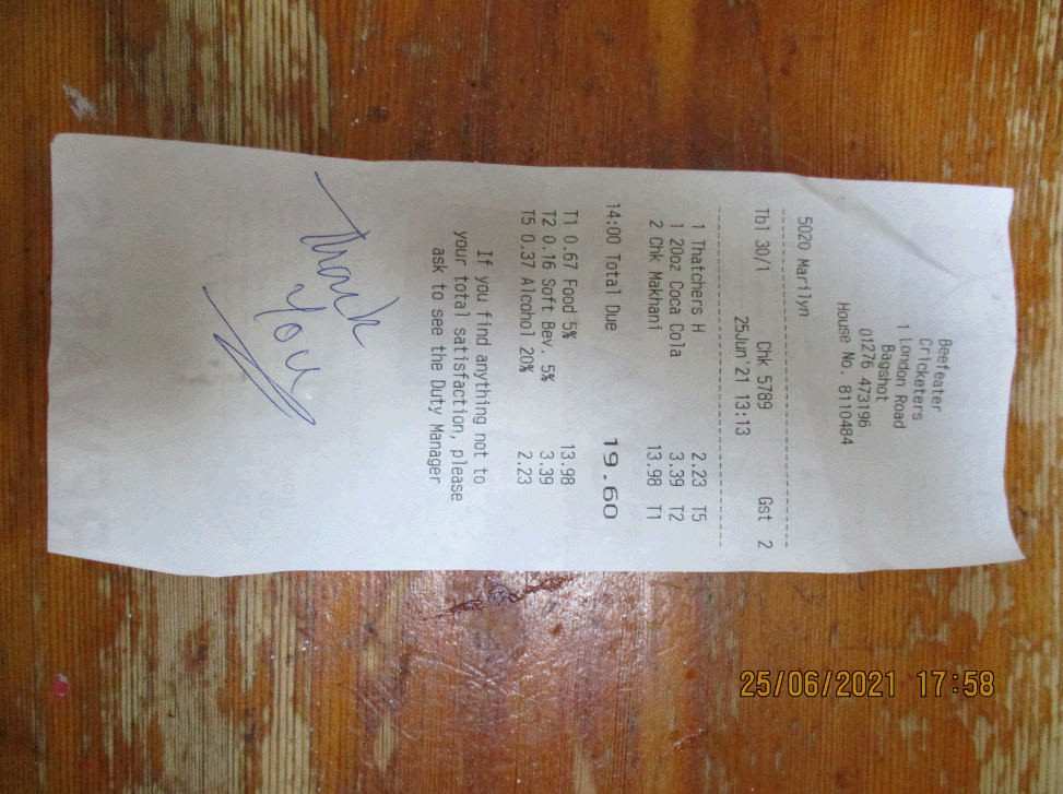 Tap or Click on pictures to expand them, and see the story of Friday 25th June 2021, including Pub Lunch at The Cricketers, Bagshot :-)