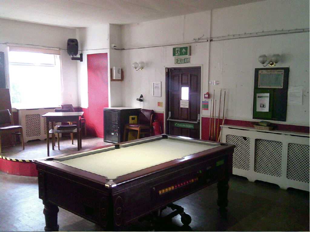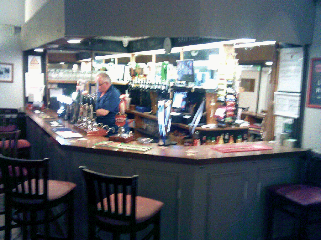 Then to right of the bar: route to eating room & Gents toilets; Ladies toilets; dart board; pool table; another TV - a bit blurred ;-)