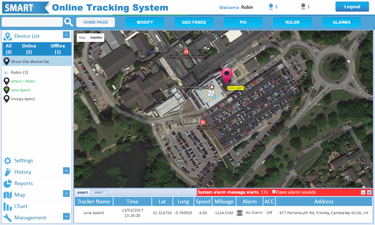 Click on the picture on the right see the details of a typical Pocket Pal tracking screen.