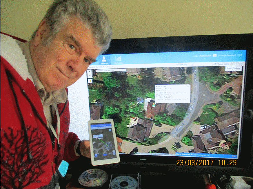How about using an old mobile 'phone as a tracker ? Easy to power in a car, off it's battery. Maybe smaller like robot boats. Or animals, like dogs or even cats ? Here are some of our old mobile 'phones June found, laid along our kitchen table. They are roughly in date order, with the oldest on the left. That second from left is a Thuraya Satcoms / GSM 'phone given me by Graham Avis of Hughes Network Systems, for testing, before we closed our deal. See the page :-) Tap or Click on Mick Gulovsen's face for the Micromite page. Maybe we'll put one or two in our new Camper Van - after we've chosen one. Beside Mick is Caterina the dancing cat, testing Tody's Pocket Pal. More later :-)