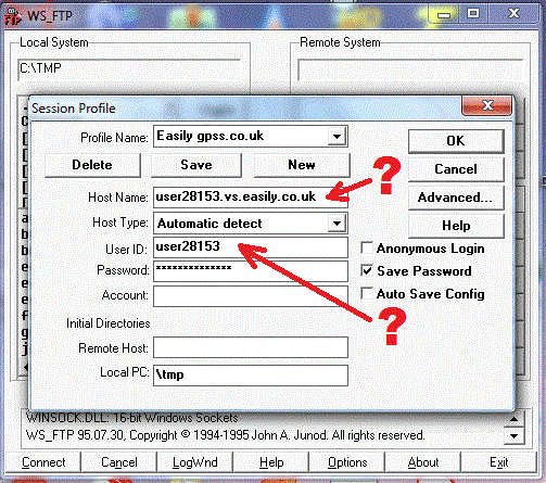 the webspace with WS_FTP - to read files - BUT NOT write to the Easily.uk Hosting.
