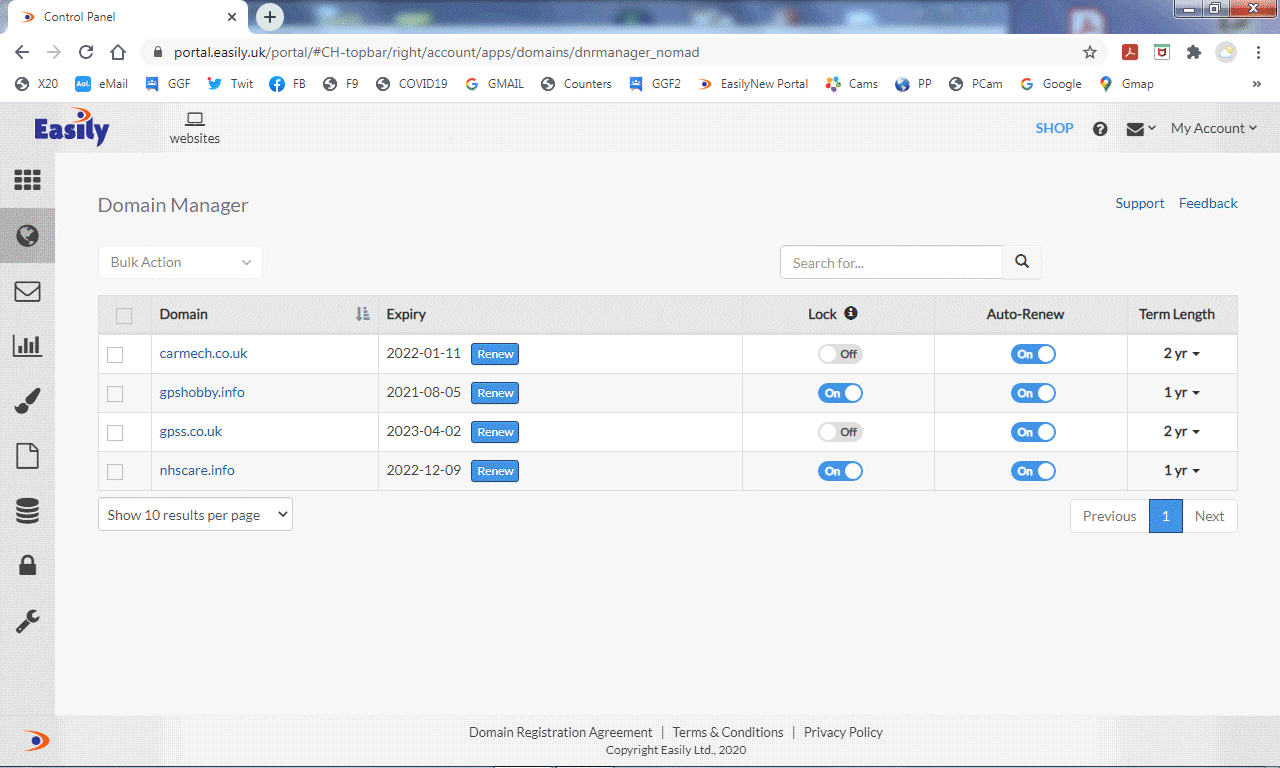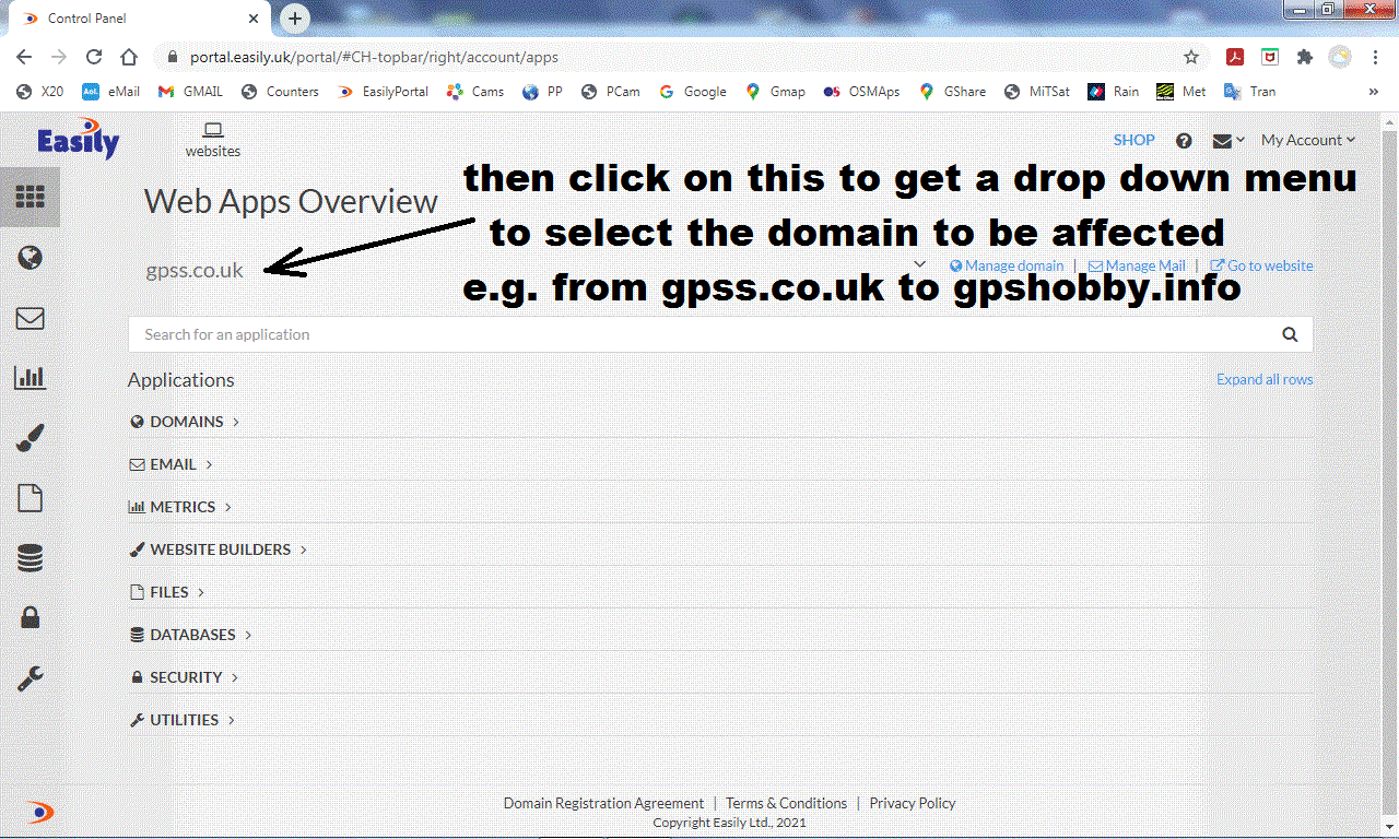 > b) restoration of the Easily hosting of my websites, including gpss.co.uk, gpshobby.info,