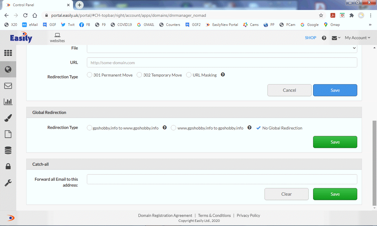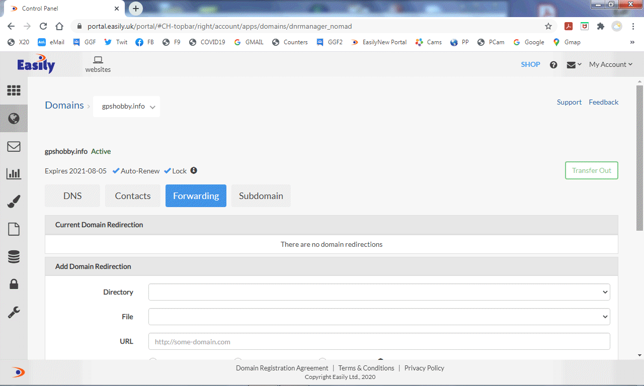 Friday 5th February 2021: Domain forwarding problem solved, and explained by my new screen shots near end