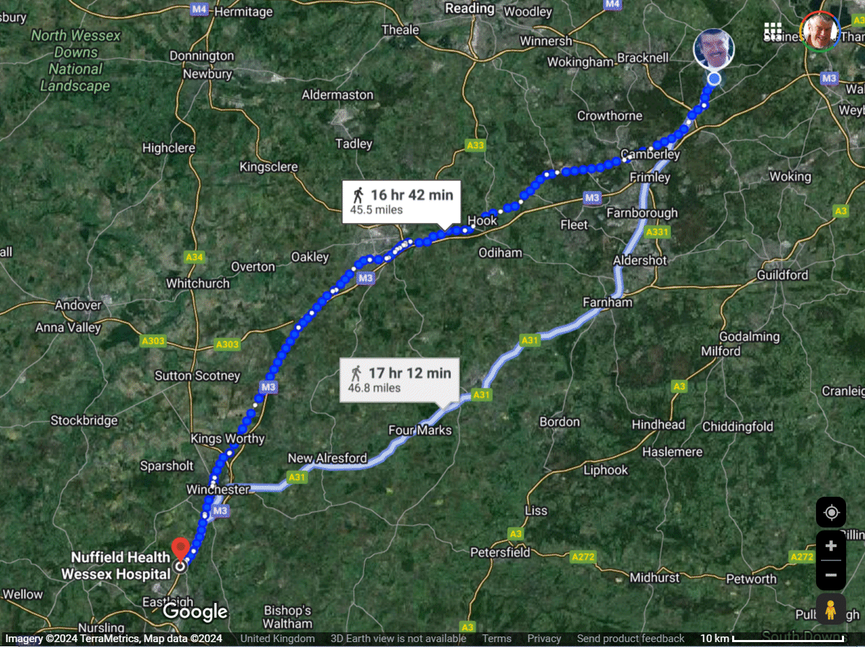 BUT, this time, the suggested appointment was with "Dr Asigo G" ( Dr Gbenga Asigo ? ) at Regus Croydon, Interchange House, Croydon, CR0 2RD. Not such a long walk from Sunninghill: only 10.3 hours. See map on right :-)