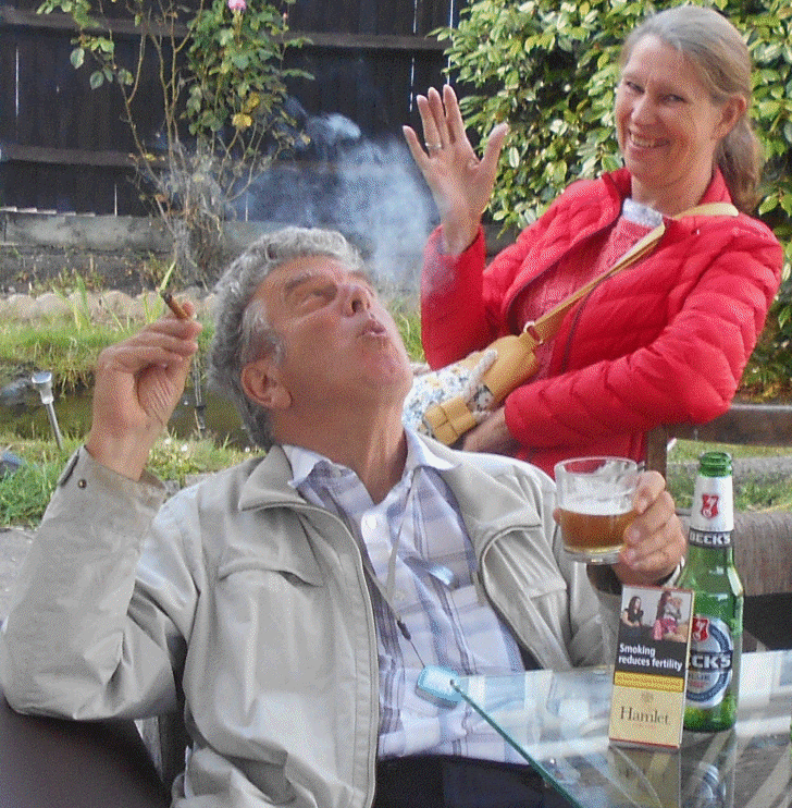 Robin and June enjoying cigar smoke at the Bansals in our village;