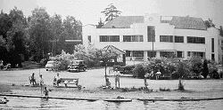 In the early 1950s the large lake - originating from a clay quarrey, I believe - was an extremely popular day trip location. The lake was used for swimming, paddle boats and even a pleasure steamer. On a sunny weekend the car park would be full of coaches, bringing day-trippers from afar. The picture on the right is from about 1960, and reproduced here courtesy of The Francis Frith Collection on www.francisfrith.co.uk and can be found in the book, "Wokingham & Bracknell" by Trevor Ottlewski ISBN1-85937-329-1. Of the buildings, it seems that only the old bandstand, centre, remains. Compare it with the picture above.
