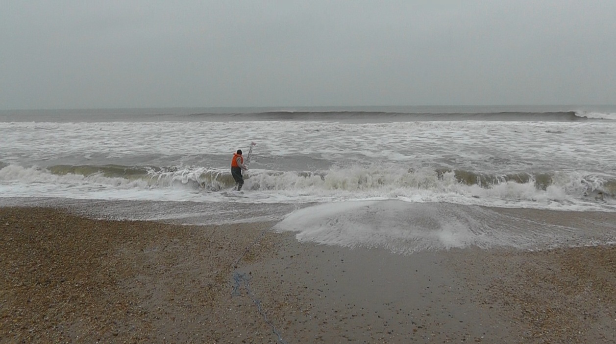 The waves were bigger than in November: 1.4 metres when we launched, and here is a useful link, which shows local conditions for Barton-on-Sea. Also - maybe more significant - the offshore breeze was much less than the 20mph North wind we had in November: Just half that, at 11 mph from the East-North-East. So conditions were far more "marginal" than for the last attempt. But the real problem was Robin's over-confidence, based on the earlier attempt, and realising too late that Snoopy was going to drift back and hit the beach. Also, Robin's caution, after nearly being swept away during the November attempt, and only wading in up to his knees, instead of his waist. All is clear on the video !