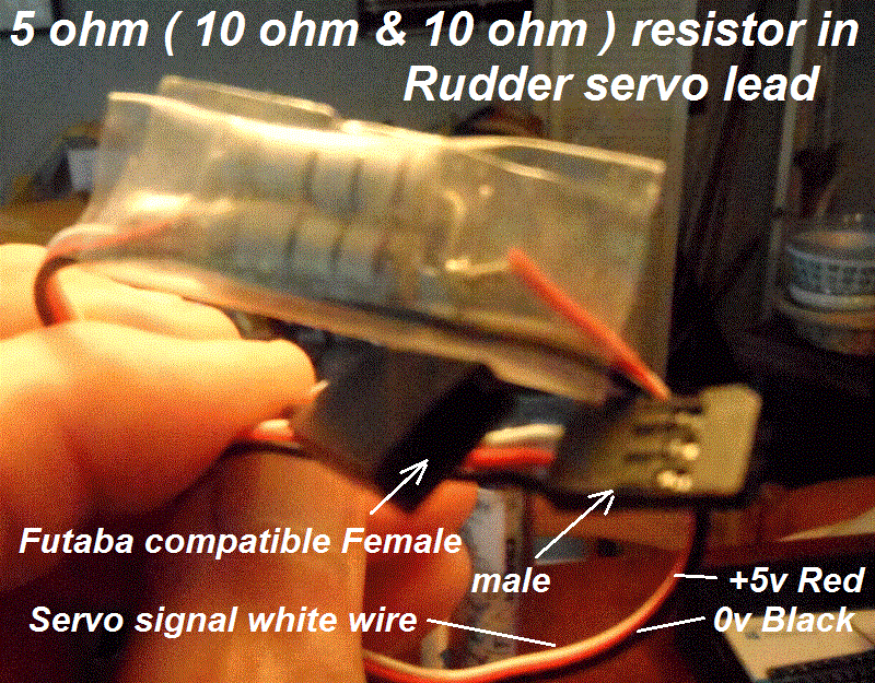 It shows the value of this 24/7 Static Testing, and it is worth considering PRACTICAL options that are alternatives to that 5 ohm resistor in the servo power lead. i.e. to limit current when voltage runs low enough for the servo to turn hard left or right, and stall against those "rudder stops". It's unlikely, but I see, many years ago, we did boost an early Snoopy Sloop's power with an external NiMHd battery pack, just in front of the box of electronics. Tap or Click on that Bray Lake Test Picture above to see the List of Blog pages .