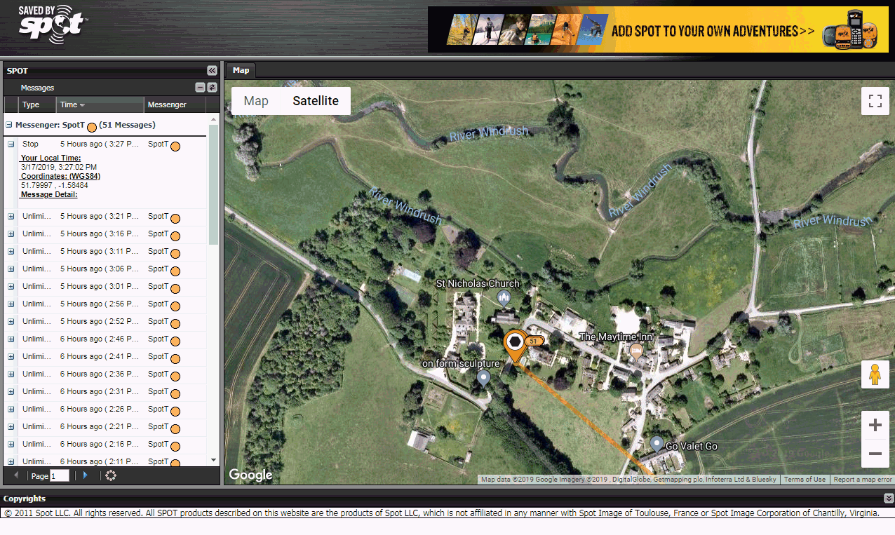 First the bad news: the SPOT Trace did not restart it's reporting after the stop at Asthall Manor.