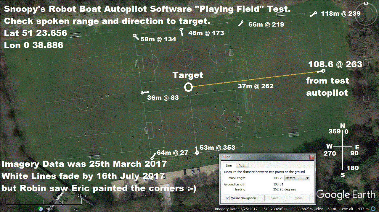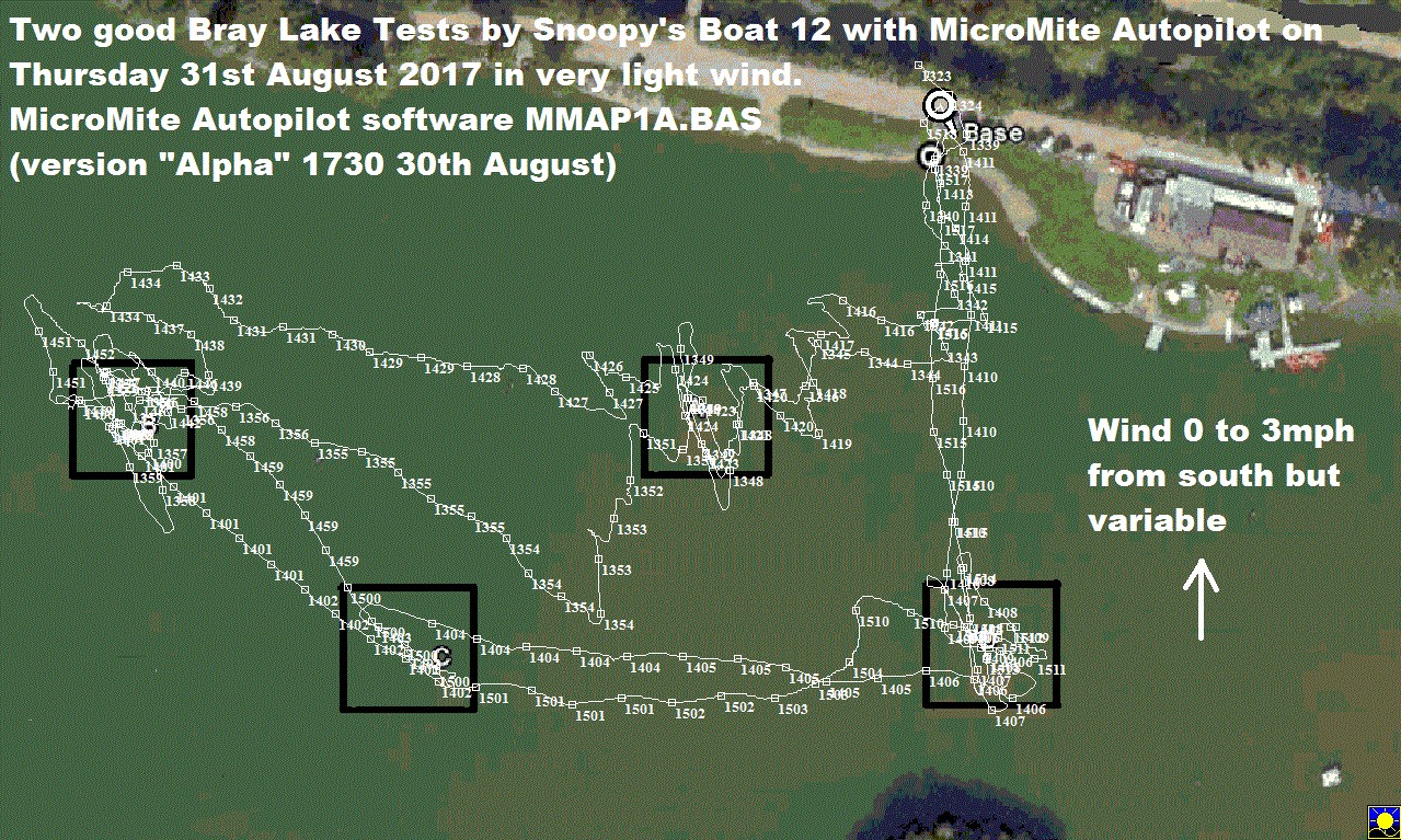 There are other things that Snoopy's latest attempt is telling us, related to our next version of the autopilot, using a better Picaxe computer, GPS, and rudder servo (all discussed above), and these will eventually get reported here.