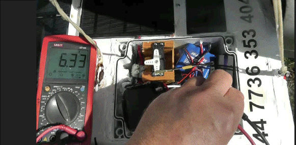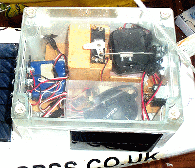 This was after replacing the failed mains USB 5v supply. The new supply caused the Picaxe/Servo to "hunt", so a 5v NiMH battery