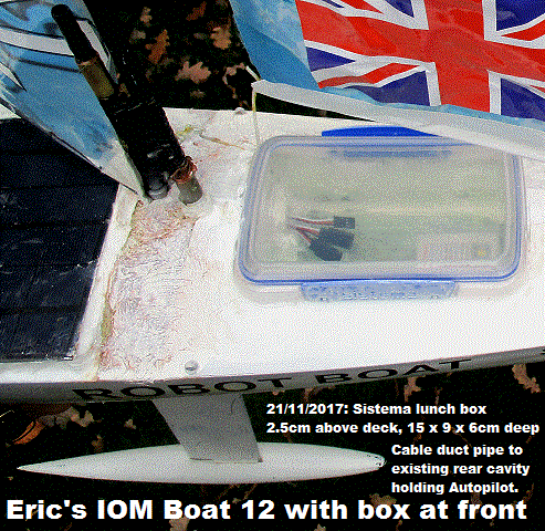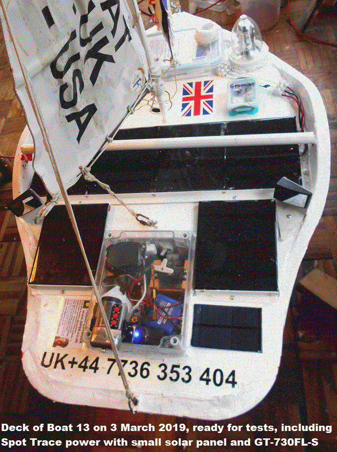 Tuesday 24th March 2015: You may have come here from the page with detail of Snoopy's March 2015 Atlantic Attempt, so you can use your "back" button, or the link to go back. Normally this BlogX page is for experimental work that may result in better electronics or software in Snoopy's next boat. Right now Snoopy is making his Atlantic attempt in Boat10, but Boat11 has been in preperation since last year.