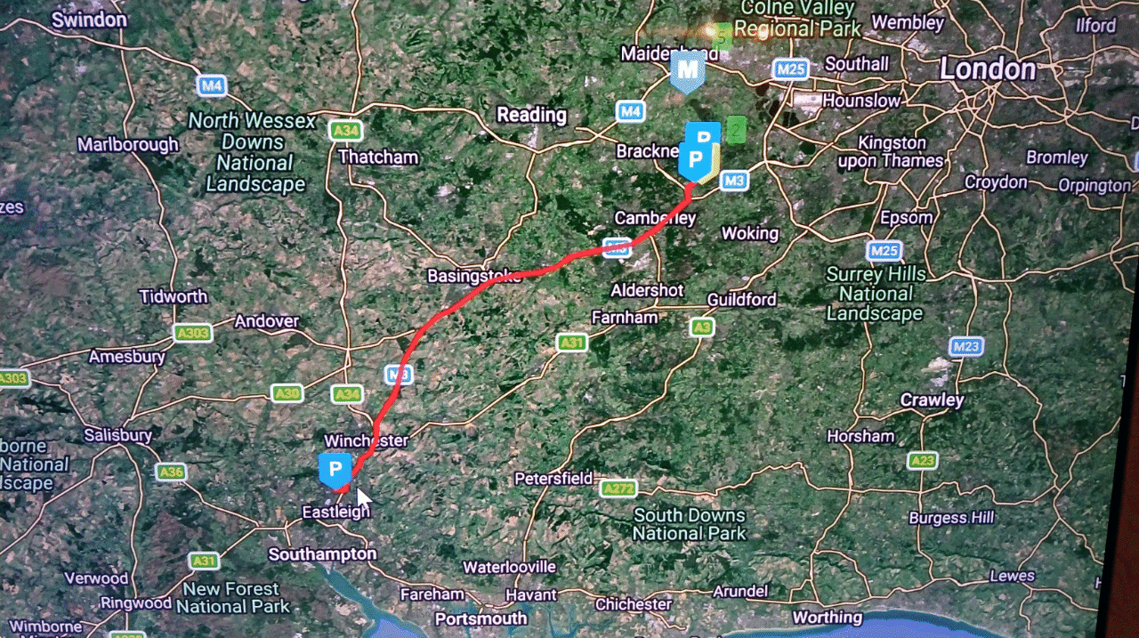 We did not need SatNav for the 15 or 20 minutes trip. But, if we had, the entrance gate is at Lat/Lon 51.35570 -0.55630 :-)