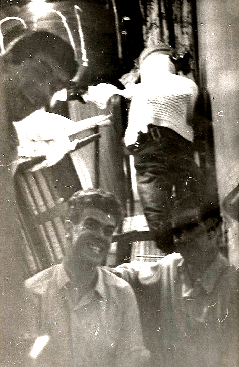 Here, on the right, is a recent picture of Homer, June, and myself, after June put up the Christmas lights.