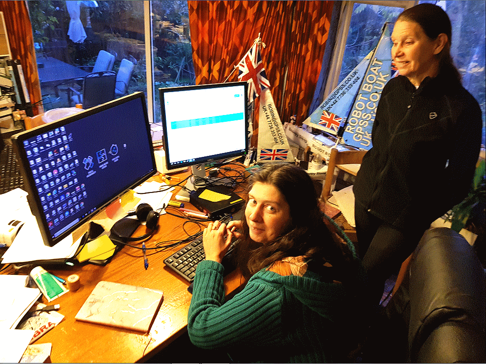 Samantha, on the left, has been working from home, and her "Office", in our Games Room,